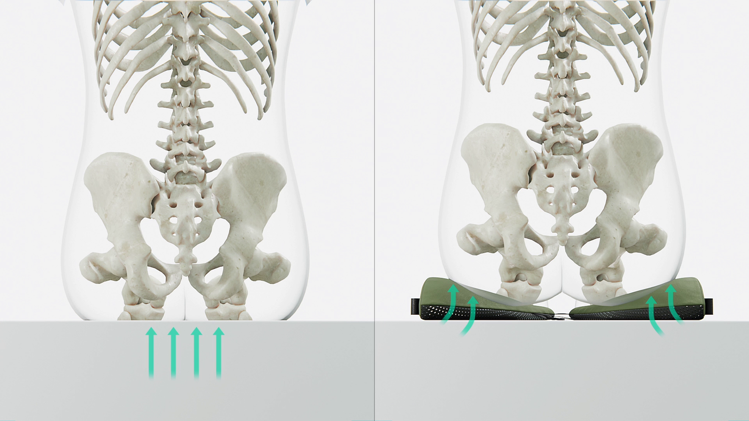 Redistribute weight protecting nerves from being compressed and reducing pressure from the sitting bones and muscles, giving pain relief from injuries or long hours of sitting
